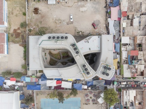 The project is composed of concrete blocks that SO-IL developed specifically for the project. Each block weighs 17 kilograms (approximately 37 pounds)鈥攖he maximum weight by law that an individual worker can carry in Mexico. These carefully measured blocks not only increased participation in the construction process but also provided a structural mass that absorbs heat and “keeps the building cool,” Idenburg says. In the building fa莽ades, SO-IL faceted the concrete and rotated windows slightly inwards to “capture shadows” and increase privacy and shading, Idenburg explains.