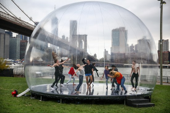 To understand the extent to which architecture has embraced performance, consider some of the other performers from the line up for Performa 17. There was Bucharest, Romania–based French visual artist Jimmy Robert, who staged Imitation of Lives, a choreographic work performed at Philip Johnson’s Glass House that merges ideas of visibility and spectatorship with a host of historical references, including the romantic affair between the architect and Harlem Renaissance cabaret singer Jimmie Daniels. And there was Montreal-based architect François Dallegret, who collaborated with Los Angeles–based architect François Perrin and choreographer Dimitri Chamblas to build a transparent dome—the Environment-Bubble—in Brooklyn Bridge Park. Dallegret had sketched out a drawing of the bubble a half-century ago—it was famously used to illustrate Reyner Banham’s 1965 critique of American residential architecture, “A Home is Not a House”—but this was the first time it took material form.