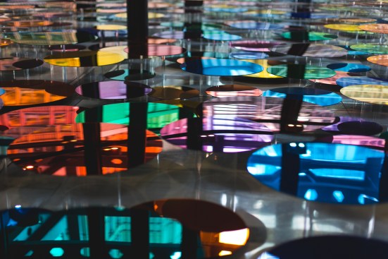 For her latest work, “Our Colour Reflection,” Manchester, England–based artist Liz West continues her examination of the interplay between light, color, and reflection. The piece, on view at Kraftwerk Berlin, an event space housed in a former 1960s East Berlin power station, is part of a group show titled “Perspective Playground,” sponsored by camera manufacturer Olympus, and on view through Sept. 24.