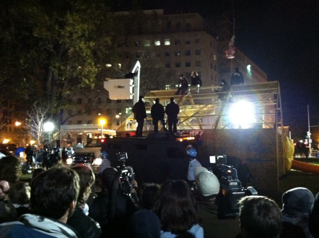 The United States Park Police, who has jurisdiction over the McPherson Square park, called a building inspector with the National Park Service to perform a building inspection. On Sunday afternoon, the inspector declared the unit dangerous, and police warned the protesters to evacuate.