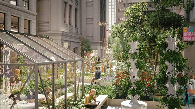 In addition to opening up these voids and knitting them into the Flower District’s public realm, ODA proposes a new zoning regulation that incentivizes buildings to include bigger courtyards in return for an increase in allowed floor area and height, with an added bonus if the building includes a passageway from the street to its rear courtyard. “As a result, the privately owned area will become public, and the owner will comply with plaza standards and courtyard regulations set by the city,” Chen says.