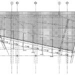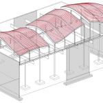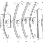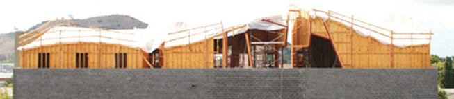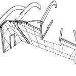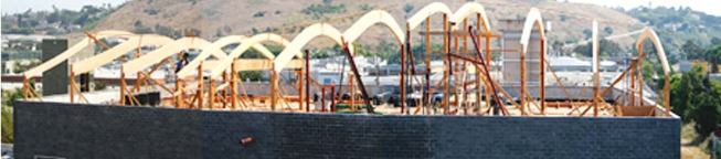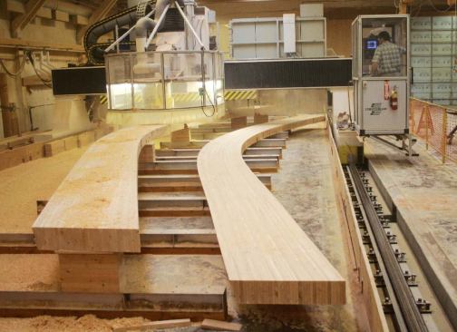 Rafters were CNC-milled out of 2x10s, 2x12s, and 2x14s, depending on how much material had to be cut away to achieve the desired curvature. No two are alike. Each rafter has a curve cut along one side, is notched on both ends for hanging, and milled with an index code that can identify it and indicate its location in the roof system—a necessity when nearly 300 unique parts are involved.