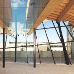 The building’s roof—swooping, slotted, and coated in fiberglass—proved to be every inch a research project. Like a kind of wild sand dune, its complex form presented a host of challenges, starting with the design and fabrication of the structural system to support it.