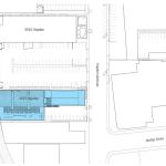 Unites two new and two existing buildings; one of the latter was an airplane-engine factory