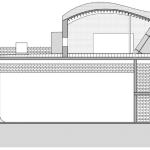 The golden-hued forms resting on top of 3555 Hayden constitute the second addition Moss has made to the building, a warehouse from the early 1950s. To convert the building into a sound stage in the late 1990s, he added a concrete-block second floor above the original brick box. In his inimitable style, Moss characterizes his latest layered addition as “Trajan over Nero”—a reference to how Trajan, the Roman emperor, constructed new baths directly on top of his predecessor Nero’s elaborate palace, the Domus Aurea. “It’s not a new idea,” Moss explains. “But it is worth considering as a precedent for how a city grows by one piece subsuming another.”