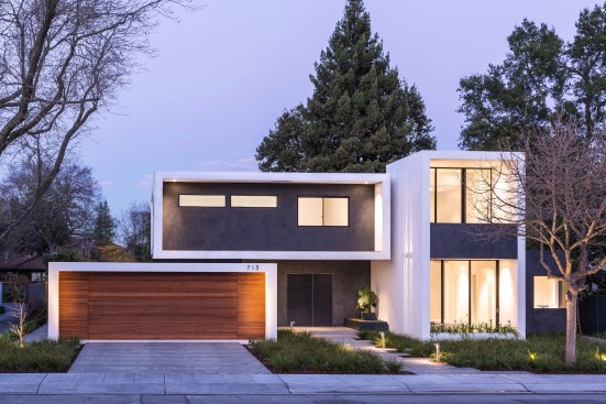 “The floating concept continues inside the home with walls that appear to be detached from the floor and ceiling, an effect that was achieved using special aluminum drywall molds. The house includes doors with no jambs to create a completely flush look with only a slim reveal between the door and the walls, and door handles without rosettes.”