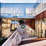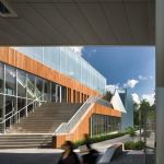 While spaces focused on individual students are private and isolated, the public spaces encourage interaction. “We wanted to create unplanned social learning environments,” Kurtz says. Sometimes this is as simple as a bench in the corner of a corridor; other times it’s more elaborate, like the stairs that rise in unison from the ground floor to the third level, both inside and outside.
