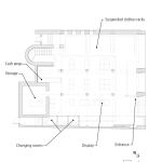 Ceilings Gypsum and exposed concrete; Extenzo (white opalescent stretch ceiling, under mezzanine) extenzo.com