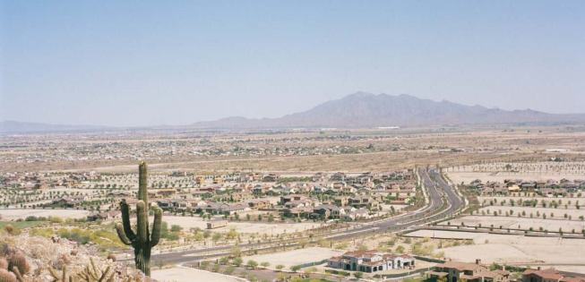 “You’re still driving through the heart of Buckeye,” said Phil Marcotte, the chief building official for the town, who was doing the actual driving. Marcotte, who started work for the town in 1994, when it had about 5,600 people, offered to show me around the vast tracts of Buckeye where developers are laying seed for 22 approved master planned communities that are expected, by 2030, to hold more than 400,000 people.
