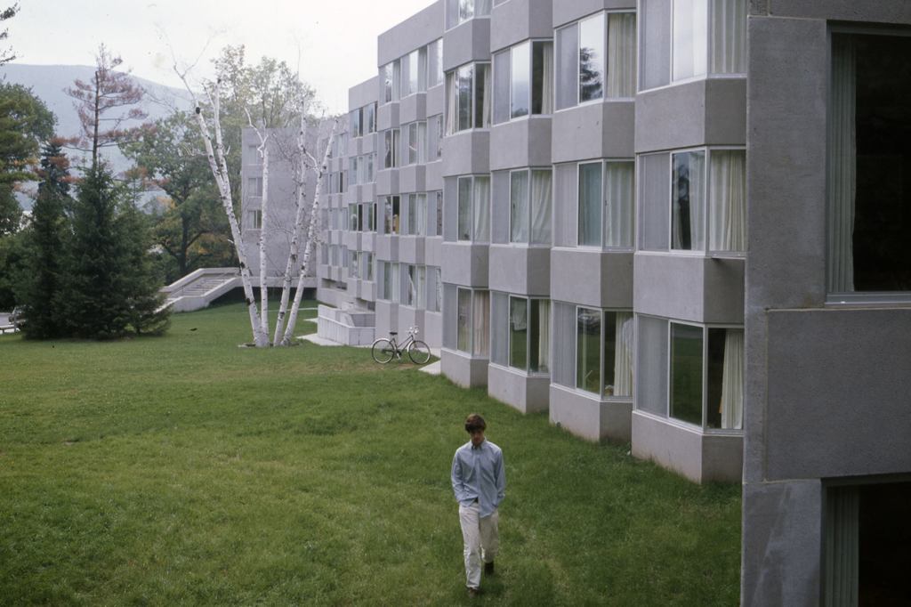 Some respect for tradition could be seen in the articulation of the building’s extensive wings into blocks related in scale to older campus structures. But these divisions were also functionally based on the number of rooms sharing bath and kitchenette facilities. The almost freestanding dining-social wing—which included the main entrance—boldly announced that the college was entering a new era. Its design exploited the spatial potential of Modernism, with inviting lounges hovering within the tall sunlit volume of the dining hall.