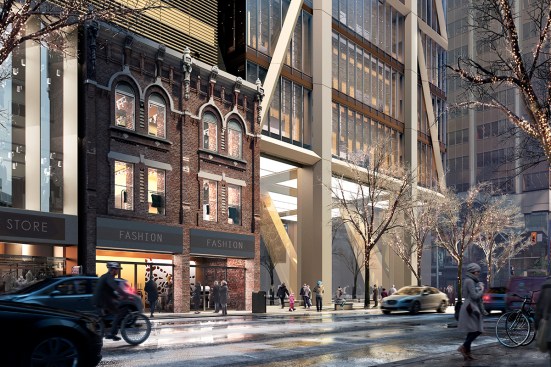 “The One is the final piece of the jigsaw in the tower cluster at the Yonge and Bloor node—one of the most prominent intersections in the city,” said the Foster + Partners senior partner Giles Robinson in a press release. “The project creates a new anchor for high-end retail along Bloor Street West, while respecting the urban scale of Yonge Street. [It] is respectful of the legacy of the William Luke Buildings, and incorporates the historic 19th-century brick structures within the larger development.”