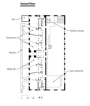 The current owner, the Homan Arthington Foundation, was determined to include the powerhouse in its ambitious revitalization of the adjacent historic neighborhood of North Lawndale. A partnership with Chicago Public Schools’ Renaissance 2010 project—charged with creating 100 new charter schools—and the Henry Ford Learning Institute clarified the program for the renovation: The powerhouse would be a green charter high school.