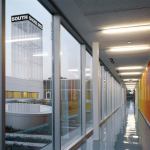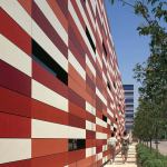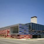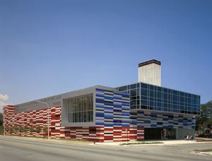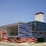 But the kids break into a half-sprint as they cross Ingleside Avenue and enter the Gary C. Comer Youth Center, a colorful beacon rising from the tough, gray street. Its checkerboard façade of red, blue, and silver metallic panels jumps out from the surrounding brick and frame houses. The center’s rectangular 74,000-squarefoot mass is topped by an 80-foot steel-framed tower with a scrolling LED sign that proudly announces what’s happening inside.