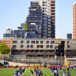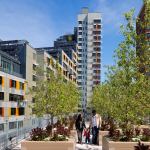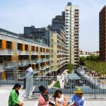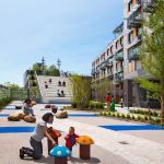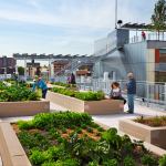 Gardening becomes a way of life for residents of the newly-opened Via Verde, a Bronx, N.Y., community built around sustainable principles. Dattner Architects and Grimshaw Architects have teamed together with developers Phipps Houses and Jonathan Rose Cos. to produce this 222-unit, LEED Gold affordable housing community. This lush housing arose out of a competition co-produced by the AIA’s New York Chapter and the New York City Department of Housing Preservation and Development to fill a city-owned, 60,000-square-foot former brownfield lot along an abandoned rail line. The L-shaped building comprises stepped housing typologies—townhouses, mid-rise duplexes, and tower apartments—that encircle a shared central garden, which, combined with habitable green roofs, contributes to a total of 40,000 square feet of open space for the residents. On the north side of the building, a public plaza will host twice-weekly farmers markets. The south side of the complex is lined with roof gardens within which residents can grow fruits and vegetables, allowing a connection to nature even within Via Verde’s urban setting.