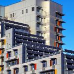 View of south façade showing solar array and connection t…