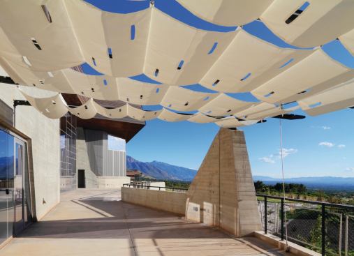 Although the stairway leading upward from the lobbyâs ticket desk into the Canyon acts as a transitional space from the outside, âWe imagine that the entry sequence begins at the bottom of the hill,â Weinrich says. âYou catch glimpses of the museum where you confront it, lose site of it, and see it again. The idea of a meander was important. As youâre climbing, you are leaving the city. The building is a little hard to figure out when you look at it at first. It plays scale games. Once youâre inside, the building envelops you.â