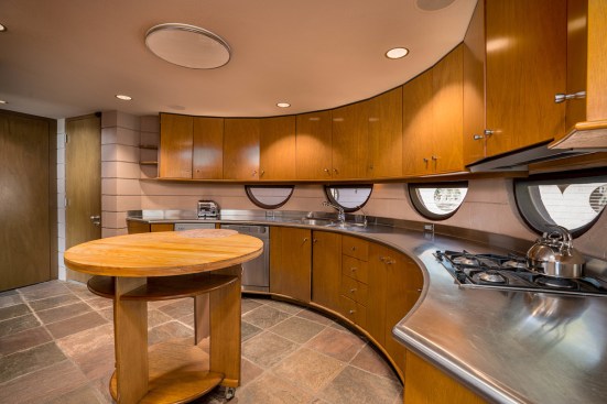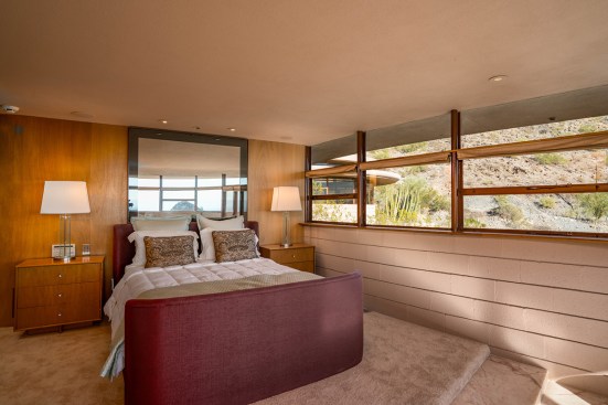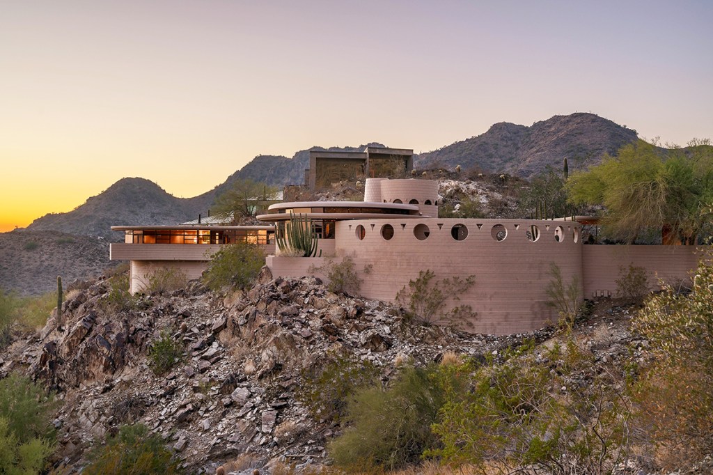 As the story goes, Wright’s last residential design—this circular, concrete Norman Lykes House—takes its form the surrounding mountains. Made of concentric circles and cylinders, the floor plan offers seamless circulation and unobstructed views of Phoenix and Palm Canyon from every room in the house.