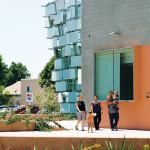 The faƧade is oriented toward the street, with a fronting plaza area that looks onto a nearby park. The intent was to make a deliberately open area that could be used by the community—and become part of it. A publicly available multipurpose room is designed into the building, so local groups can hold events there. Double doors open the community room up into the plaza, allowing events to spill out into the neighborhood.