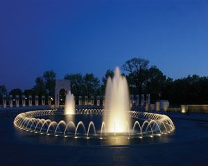 The lighting schemes for three commemorative structures in the Washington, D.C., area—the National World War II Memorial, the Washington Monument, and the U.S. Air Force Memorial—each had a specific set of challenges and requirements. The result is a trio of unique design solutions that respond to the individual sites and programs for each structure.
