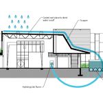 The primary strategy is to direct water from the rooftop through large scuppers and into an underground drain. A pump at the base of the drain siphons the graywater back into the building, where it is used to fill the 7,500-gallon flume in the hydraulics laboratory for student experiments. When the flume system is at capacity, the water gradually filters back into the site’s hydrological system.