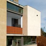 Energy conservation drove Renzo Zecchetto’s material choices and led him to search for local manufacturers. “We design for green in the long run,” he says. “We assess the life span of the building, not the capital investment.” Zecchetto looks carefully at the energy consumption of the products that he specifies. “It is important to utilize materials in their natural state,” he explains. “Raw concrete, solid-state lighting, UV glass, and no paints, chemicals, or solvents.” True to this philosophy, Zecchetto specified cast-in-place concrete and plaster walls with integral color. Other products integrate recycled materials: The teak panels on the building’s exterior are embedded with recycled plastic, and the concrete masonry unit (CMU) blocks in the basement are composed of aggregate salvaged from demolished roads.