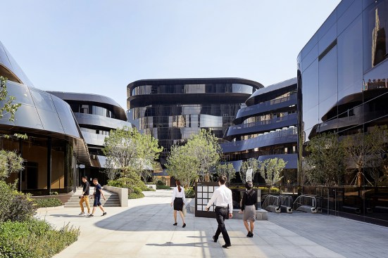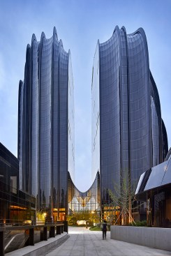 International architecture firm MAD Architects has completed “Chaoyang Park Plaza,” a 2,368,000-square-foot, high-rise complex in Beijing’s central business district. MAD’s smooth and curvilinear design takes its form from nature, and was in fact, inspired by classic Chinese shan shui landscape paintings. The mixed-use complex consists of a total of 10 residential, commercial, and office buildings that are located on the southern corner of the district’s Chaoyang Park. The project has received the LEED Gold certification from the U.S. Green Building Council for the innovative use of green technology, natural lighting, and air ventilation system.