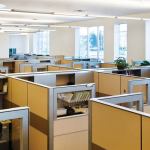 The tenants relocated from largely closed-plan environments to a much more open-plan space. Standardsized cubicles were used in offices in all five buildings to ensure that as departments grow and shrink over time, the furnishings can be reused.