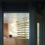 But without a doubt, the main focus of the space is the cupcake display stand—formed from stainless steel, routed resin, and glass, the custom installation hails each cupcake as an individual work of art. It is this element above all that drives home the point that “we didn’t want to design a bakery,” says Woodhouse. “We didn’t want the imagery of a bakery. We didn’t want to bend over and have cases in the counter. We wanted the cupcakes at eye level, like a museum, or a jewelry store.”