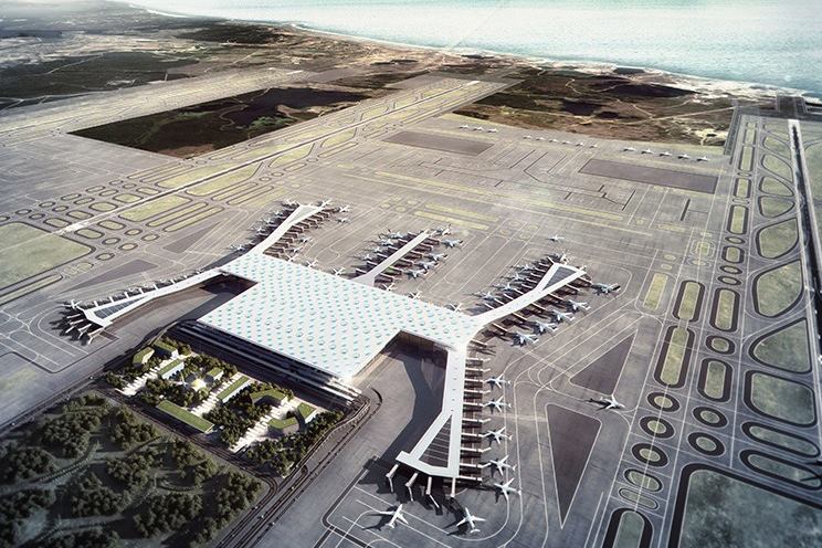 London-based Grimshaw, Haptic Architects, and Oslo, Norway–based Nordic Office of Architecture released updated images for the entire design scheme of the Istanbul Grand Airport. Back in April the firms initially announced plans for the terminal, with images of the interiors, but these updated recent images add an aerial view and specify the total size of the project.Assisted by local Turkish Partners GMW Mimarlik and Tekeli Sisa, this new development will replace the existing Ataturk Airport. Situated on the coast of the Black Sea, about 20 miles outside of city-center Istanbul, the entire project will span over four phases. The first phase, which will open in 2018, calls for 90 million passengers per year with three runways. Once the entire project is complete—with no timeline released yet—it will rise to 150 million passengers and a final six runways. Master planned by London-based engineering firm Arup, the finished development will span a gross floor area close to 1 million square meters (10,763,910 square feet), making it the world’s largest airport terminal under one roof, according to Nordic Office of Architecture.