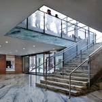 Throughout the interior, Moneo frames unexpected glimpses of the stately architectural enclave into which his project boldly encroaches, in homage to the classical motifs that define the cloistered campus’s architectural heritage. These views are subtle gestures, but they admit the past into a building that itself looks to the university’s future. “We have been planning this project for 10 years,” explains Joseph Mannino, AIA, associate vice president of Columbia’s Capital Project Management office. Acknowledging that conventional laboratory buildings are hermetically sealed, “the goal was to create public spaces within the building that reflect the university’s openness,” he says.