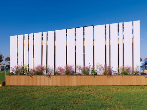 Ohio State’s entry, dubbed enCORE, was partly inspired by Ohio’s recent economic decline. “It was important for us to show how Ohio still has manufacturing and technologies that are about the future,” says faculty architecture adviser Keoni Fleming. The house incorporated a thin-film array manufactured in Toledo and an Ohio-made solar array and doors. To keep costs down, the team chose inexpensive materials and common building techniques. “The house is standard platform framing with 2x6s, but we used advanced framing techniques,” Fleming says. “The prefabricated roof trusses line up with the wall studs, allowing a top plate to be eliminated. The windows use metal brackets, so you don’t need double studs at the openings. It minimizes materials.” The house employs low-cost passive measures and innovative technology, such as a solar thermal hot-air system incorporating a desiccant wheel that can lower humidity. A sliding polycarbonate screen provides privacy and sun protection, a bioremediation system filters rainwater, and the dynamic plan extending from a consolidated building core provides ample living space. “The house is sized to work for a family with a child,” Fleming says. “The last time we came to the Solar Decathlon, you’d hear a lot of people say, ‘Wow this is great. But I could never see myself living here.’ I think what we wanted to show this time is, well, actually you could.