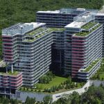 Green roofs throughout the complex all utilize garden roof systems from American Hydrotechâusing a combination of their Extensive and Intensive product lines. The two lines are differentiated by the amount of maintenance requiredâthe Extensive line comes with sedum, grass, and other maintenance-free plants, and the Intensive system can accommodate small trees, annuals, and other species that require regular gardening care. Optima has used the manufacturerâs products for almost two decades. âFor something this critical, we want to use what we think is the best,â Cison says.