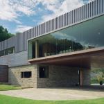 OTHER PRODUCTS & MATERIALS Exterior—Dry-stacked stone veneer by Schwartz Stone and copper wall systems by Pac-Clad.