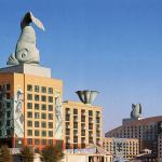 The P/A jury carefully hedged its approval of the project. “It’s fantasy architecture, and it belongs in Disney World. That’s where it is—which makes it acceptable,” said juror Adrian Smith, FAIA. Writing in the October 1990 issue of Progressive Architecture, after the hotels were completed, architectural historian Vincent Scully observed that “one would have to be a mean old curmudgeon indeed to be less than delighted … at least for a while.” But he went on to deliver a judgment that seems less than positive: “The Swan and Dolphin are cosmic cartoons in toto, their shapes abnormally few, obvious, and vast.”