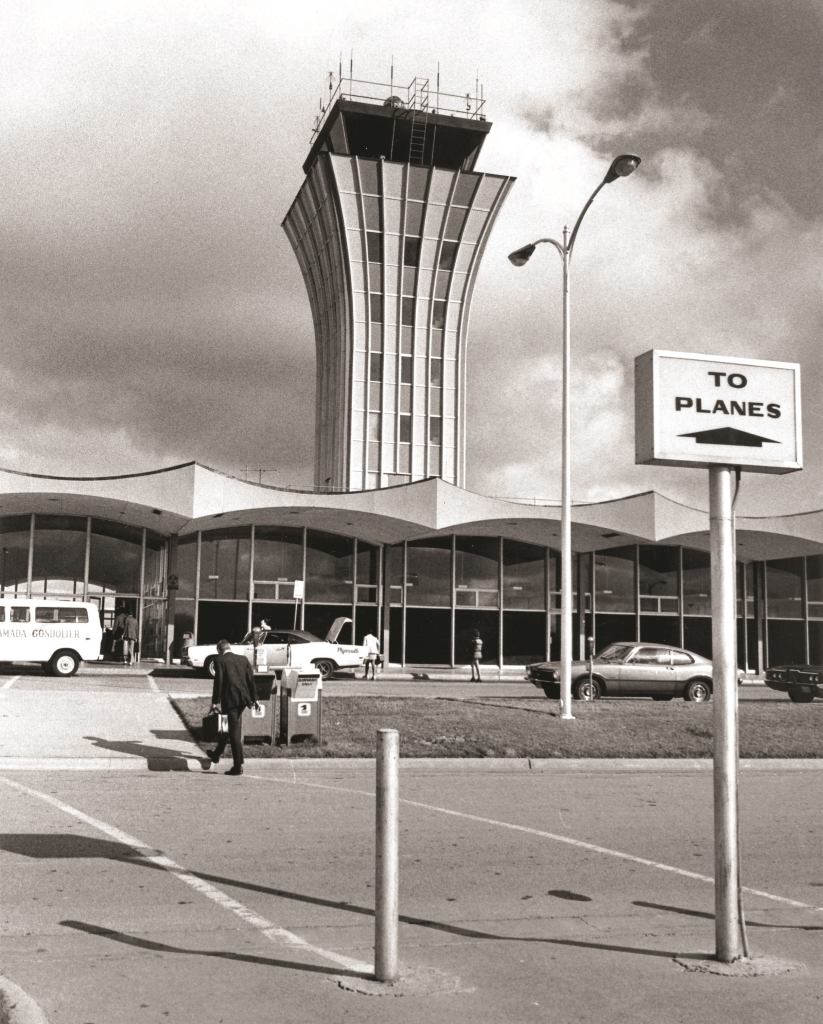 The replacement of a former airport with a new urbanist community represents a good use of open land near cities, but it also reveals how quickly technology can render airport facilities obsolete. Fehr & Granger, in their awards submission, said that they hoped their terminal would “express something of the spirit of progress which exists in air travel today.” This restored, but unused and somewhat forlorn, control tower, barely 50 years old, shows just what that spirit of progress can mean for older buildings.