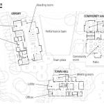 The new, $16 million Portola Valley Town Center occupies an 11-acre site beside a meadow and walnut grove. But its three main buildings—a library, town hall, and community hall—are placed away from the location of the old school, which was discovered to have been straddling the San Andreas Fault. By tucking the new complex in a corner of the site, the architects made space for a new baseball field, tennis courts, and a 300-foot-long stretch of restored creek that had been diverted into a culvert.
