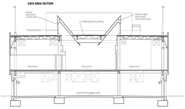 The budget was extremely tight. “Any construction-related cost that might result in an increase in the price of a plane ticket was out of the question,” says Hooper. “On the other hand, durability is essential to efficiency. If we could demonstrate that a particular material, though slightly more expensive, would reduce the kind of maintenance and repair that can interfere with operations, the client was amenable.”