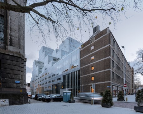 de Graaf: The monument was built shortly after the war, in 1953, and it was the building from which the reconstruction of Rotterdam was drawn. We approached the monument as a delineation of a site where the focus is on the bulk of the volume, which is the new building. It’s basically a wall we built up against.