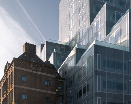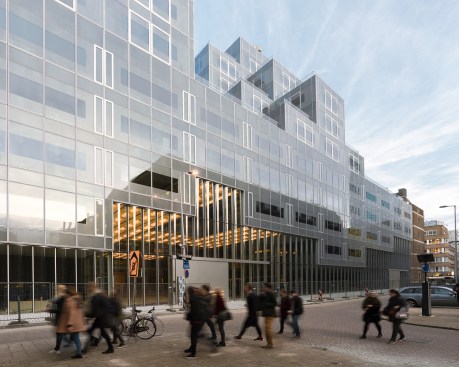 “You have a real sense of freedom to do something in Rotterdam,” muses Reinier de Graaf, native son and Office for Metropolitan Architecture (OMA) partner, as he talks about the Timmerhuis, the firm’s latest hometown project that opened in December 2015. Alluding to the city’s near-total destruction during World War II, he points out that the dearth of historic architecture means “there’s no cohesion here to spoil.” Yet Timmerhuis is just as well a preservation project, one that integrates the exterior wall of an early post-war building with modular steel-and-glass units—which de Graaf calls dubs “pixels”—assembled into a cloud-like, cantilevered structure that houses municipal offices, a city museum, and a public passageway on the first four stories, with apartments on the upper floors.
