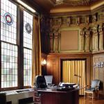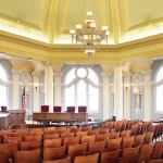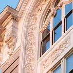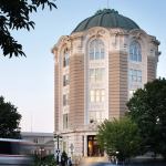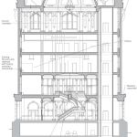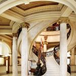 The building’s third and fourth floors are more workmanlike offices, with dropped ceilings and little historic fabric, other than the windows. The fifth floor consists entirely of the council chambers, an elegant domed room painted powder blue and surrounded by a multitude of feminine statuary positioned at regular intervals around the perimeter. Beyond minor patching and a new coat of paint, the room received new low-energy recessed downlights, new torchlike wall sconces, and a dry-pipe sprinkler system with concealed, pop-down heads. Steel-strap reinforcing on the expansive windows, which were bending under high wind loads, was concealed. And existing fan-coil console units beneath the windows were replaced with heat pump units that, while functional, nevertheless detract from the otherwise elegant aesthetic. Throughout the building, restrooms were remodeled and expanded to comply with ADA guidelines.