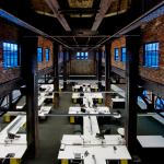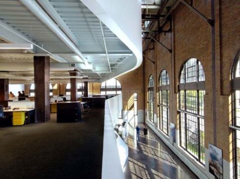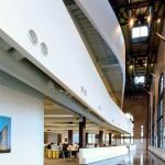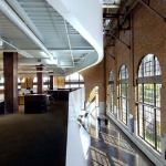 A 1928 municipal power building gets a new life as the LEED Gold–rated St. Louis headquarters of Cannon Design. The National Historic Landmark exterior was fully restored, while the interior of the empty shell—which was gutted by the city before Cannon bought it—was outfitted with energy-efficient mechanical systems and a new mezzanine level to accommodate the building’s massive arched windows. Curvilinear railings contrast with the original steel, wood, and brick structure.