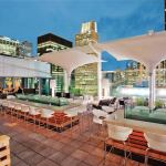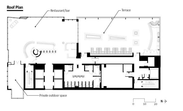 The two restaurants at the base have been well received, but it’s the rooftop one that drew overflow crowds of hipsters during its inaugural summer. Central countertops are shielded from the sun by inverted umbrellas and movable tables are scattered for intimate groupings. From any vantage, the skyline view dominates.