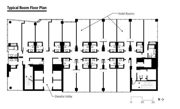 Although the hotel is not LEED certified, the owners tout a handful of eco-friendly features that include heat pumps, low-E glazing, and dual-flush toilets. Lighting was designed to beat industry standards by 30 percent, with expected annual savings of 1.24 million kWh.