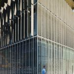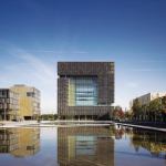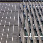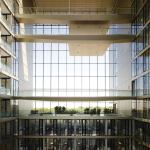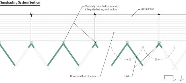 A complex sunshading system makes the lack of air conditioning possible in the glazed structures. Stainless steel louvers and fins open and close based on the sun’s path to maximize views out, while reducing glare and cutting down on heat gain. But the sunshading system—with its triangular, square, and trapezoidal fins—also serves to give the campus buildings their signature appearance.
