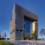 Outside of Essen, Germany, sits the Krupp Belt, a 568-acre redevelopment that has, until recently, been very nearly empty. Much of the site was littered with rundown and largely abandoned factories until Krupp Park, a 57-acre public greenspace opened last year. Now, new construction is revitalizing the site’s built landscape as well: The ThyssenKrupp Quarter is a multibuilding campus that houses manufacturing conglomerate ThyssenKrupp AG’s main offices. Designed by the team of JSWD Architekten in Cologne, Germany, and Chaix & Morel et Associés in Paris—who together beat out more than 100 submissions in an international competition—the campus had to answer the need for not only a cornerstone for the larger development, but a signature identity for the company.