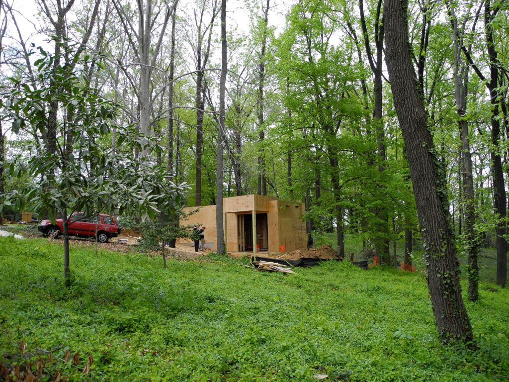 Of course, using plebeian materials is appropriate for a kind of dwelling that has historically housed ascetics, and the students did want to maintain some sense of the primitive. Accordingly, they used poured concrete and lumber from an old barn for the floor. And the shower, two-burner stove, and light fixtures won’t be fancy.
