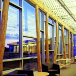 When the outside temperature and humidity are right, this actuator system opens the library’s operable windows to allow passive ventilation and cooling. Each window has its own actuator, which ties into the building’s thermostat. The actuators require a plus or minus 10-degree differential from the desired temperature to open or close windows.OpenLight Roller ShadesCreative Windows