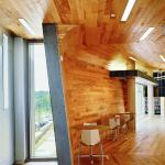 Early in a design process focused on sustainability, the library’s architects at Inform realized the dead trees’ wood could become part of the library itself. It worked: The ash trees were used to make interior flooring, wall panels, ceilings and, conspicuously, a row of expressive columns along a bank of windows facing south into a nature preserve, their naked, sealed surfaces visibly scarred in rune-like patterns by chewing borers. “A happy accident”—and a guiding one, says Cory Lavigne, the firm’s design director.