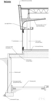 Even after minimizing the library’s surface parking, Inform needed to anticipate excess stormwater and keep this potentially polluted runoff from quickly overwhelming a nearby retention pond. Three StormTech collection chambers lie underground below a rain garden, where water initially collects. The chambers help filter water and release it gradually into the retention pond.Galvalume Custom Panels