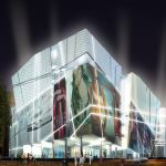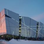 At just over a year old, the Vershina Trade and Entertainment Centre, designed by Rotterdam-based Erick van Egeraat, is not much older than its home city of Surgut, which sprung up out of the then-USSR’s harsh Siberian landscape 40 years ago. This city of just over 300,000 owes its existence to nearby oil and gas resources, and it serves as a home base for people working in those industries. But a subarctic climate (icy temperatures and short days in the winter) renders the city inhospitable to those who don’t have work as a reason to keep them there. At its core, Vershina is meant to add some welcome amenities to this industrial area.